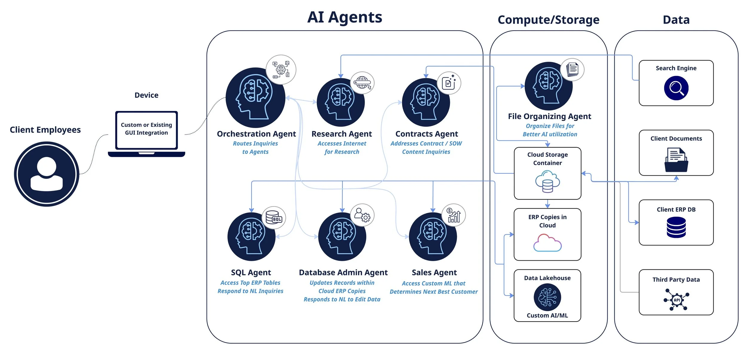 We developed a suite of intelligent AI agents that transformed how our $100M client engaged with customer records across their CRM and transaction systems.